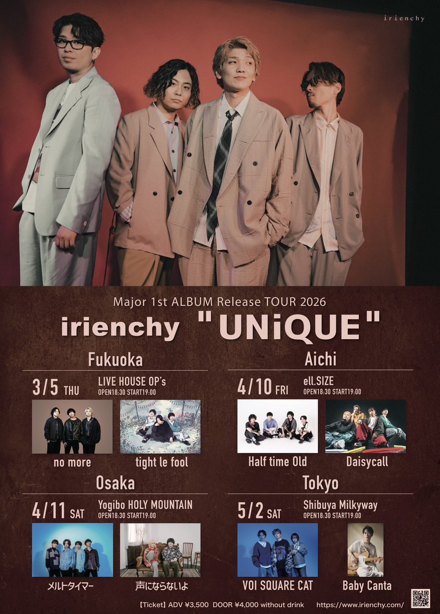 irienchy Major 1st ALBUM Release TOUR 2026 “UNiQUE”